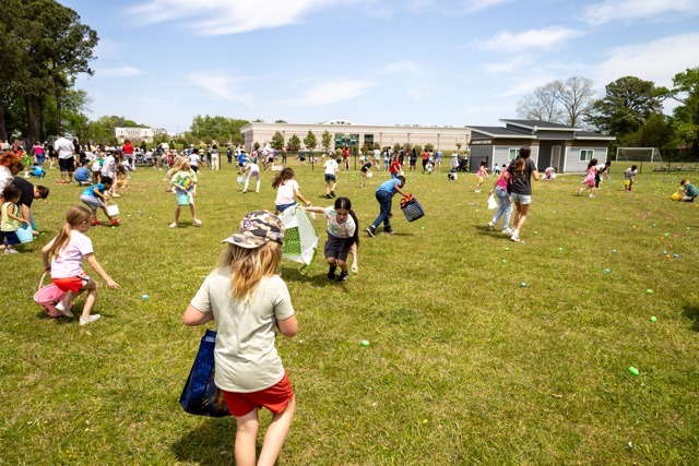At Easter, our beautiful campus becomes a place of celebration and outreach as we host a large community Easter Egg Hunt. Families from across Hampton Roads gather on our grounds, and our students serve by helping organize, set up, and run activities. In addition to creating lasting memories for children, this event reminds our community of the hope and life found in the resurrection of Jesus Christ.